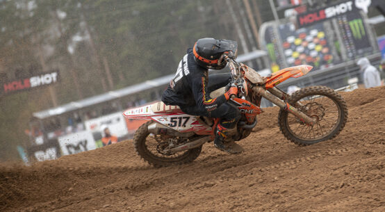 Hitachi KTM fuelled by Milwaukee’s Isak Gifting was also in the mix as he started to get pressured by Roan Van De Moosdijk of Nestaan Husqvarna Factory Racing and Big Ban World MTX Kawasaki Racing’s Mikkel Haarup. Gifting crashed now too long after.