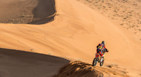 “Nacho” Cornejo’s 25th place on the day, far from the top 15, which gave competitors the opportunity to pick their starting order in the following stage, may seem cause for concern. His three Honda teammates all played the little game of the qualifying stage, but only Pablo Quintanilla, second, came out ahead. Indeed, Barreda and Brabec, 10th and 12th, respectively, will have to settle for scraps when the time comes to choose their starting position for stage 1B. Nacho, instead, came to the conclusion that the only winning move was not to play! His sandbagging cost him some time (8′45′′), but he will be racing from a vantage point. The biker who last year fought for victory until two days before the finish made no secret of his strategy at the bivouac in Ha’il. “Today, there was a lot to be gained, but even more to be lost in the middle of the pack of 15, so I decided to play it safe. I lost some time today, but I’ll get opportunities to claw it back in the coming days“. So perhaps not such a crushing blow?